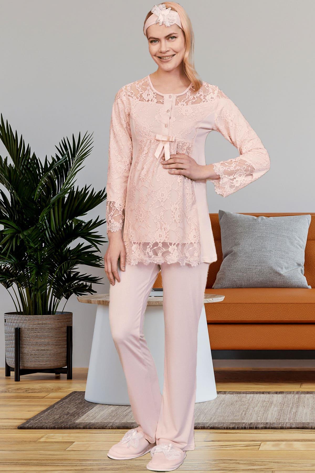 Mecit 5212 Pudra Dantelli Lohusa Pijama Takımı (5212YP-01)